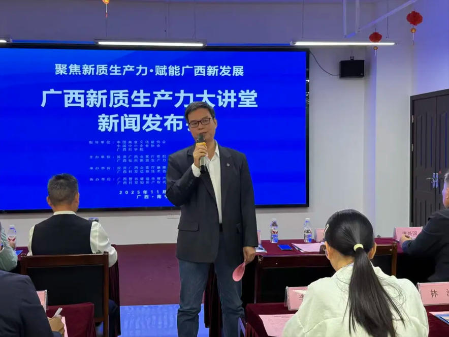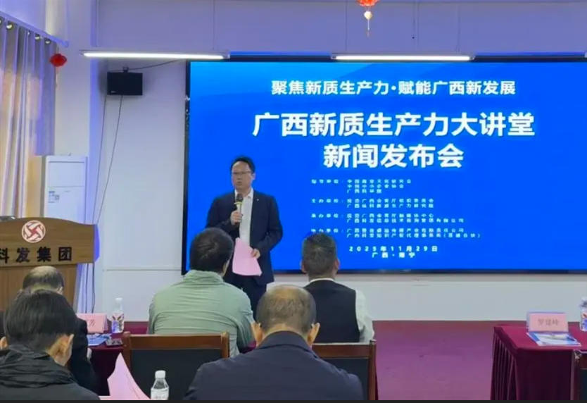 11月29日,“广西新质生产力大讲堂”在南宁正式启动,广西桂科新质生产力研究院作为主办单位之一,与各方携手迈出了推动广西新质生产力发展的关键一步。这场以“启迪思想、汇聚资源、赋能实践、驱动未来”为核心的活动,承载着破解发展瓶颈、积蓄经济进势的使命,也成为我院服务广西的重要实践平台。